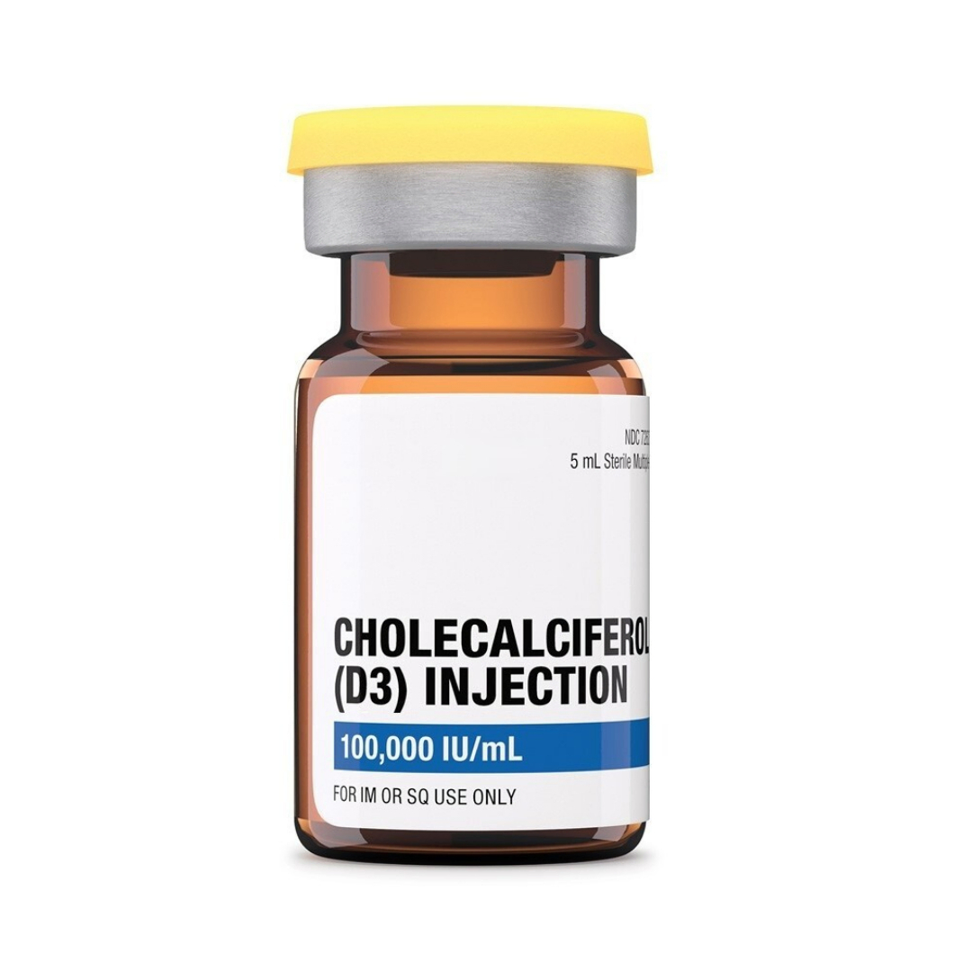 Cholecalciferol Injection is a prescription injectable formulation of Vitamin D3, a fat-soluble vitamin essential for calcium and phosphate homeostasis, bone health, immune function, and cellular regulation. This formulation is solubilized in grapeseed oil to enhance absorption and bioavailability.