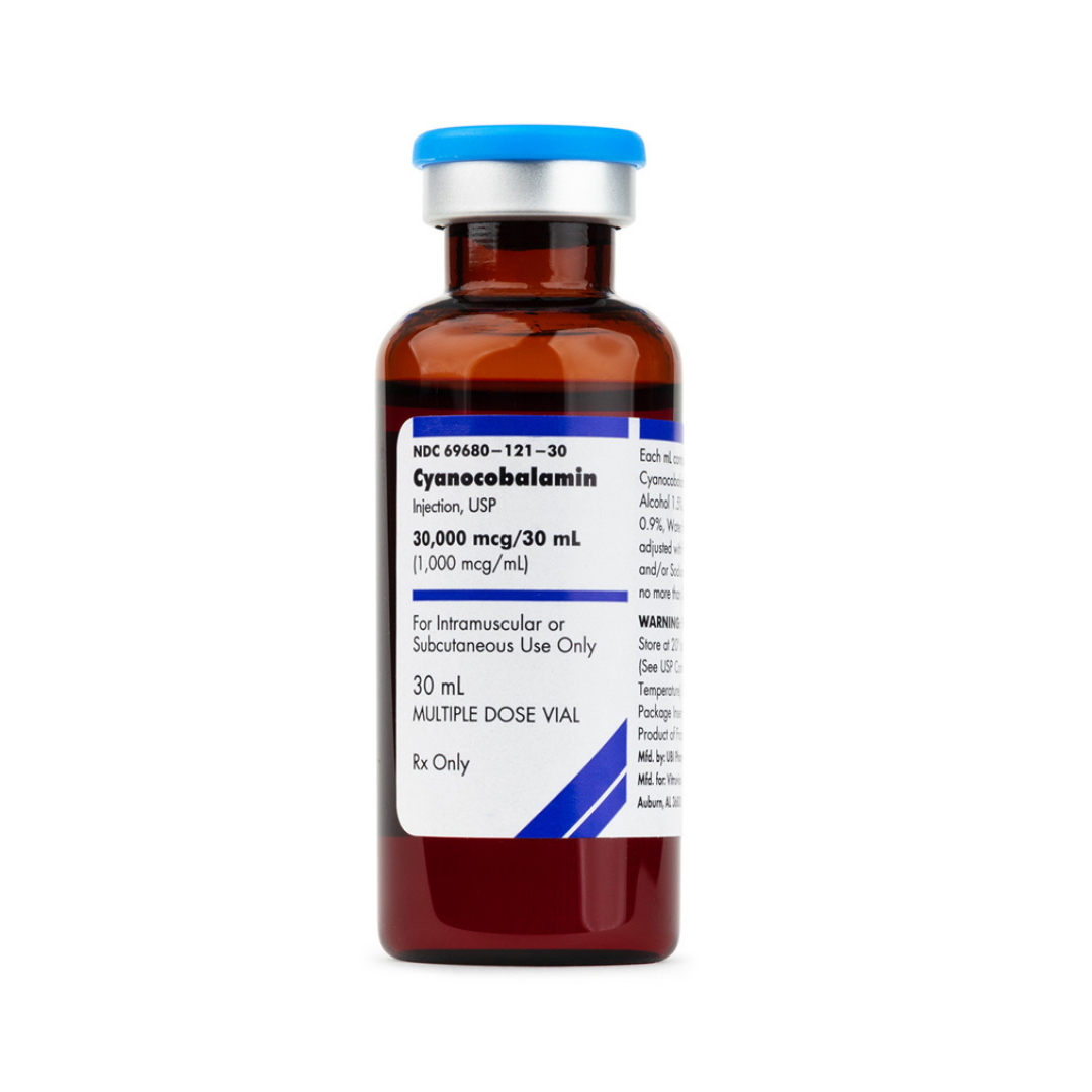 Cyanocobalamin Injection is a prescription injectable formulation of Vitamin B12, an essential water-soluble vitamin required for red blood cell formation, neurologic function, and DNA synthesis. Cyanocobalamin is a synthetic form of Vitamin B12 commonly used for the treatment and prevention of vitamin B12 deficiency, particularly in patients who have impaired absorption or require rapid replenishment.